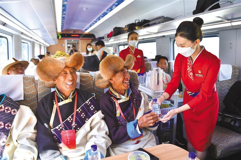 拉林鐵路林芝站黨委書記韓春旺說:“兩年來,林芝站認真貫徹落實習近平總書記的重要指示要求,通過提供安全舒適的出行體驗、全面周到的服務,切實滿足人民群眾對美好生活的向往?!?/p>