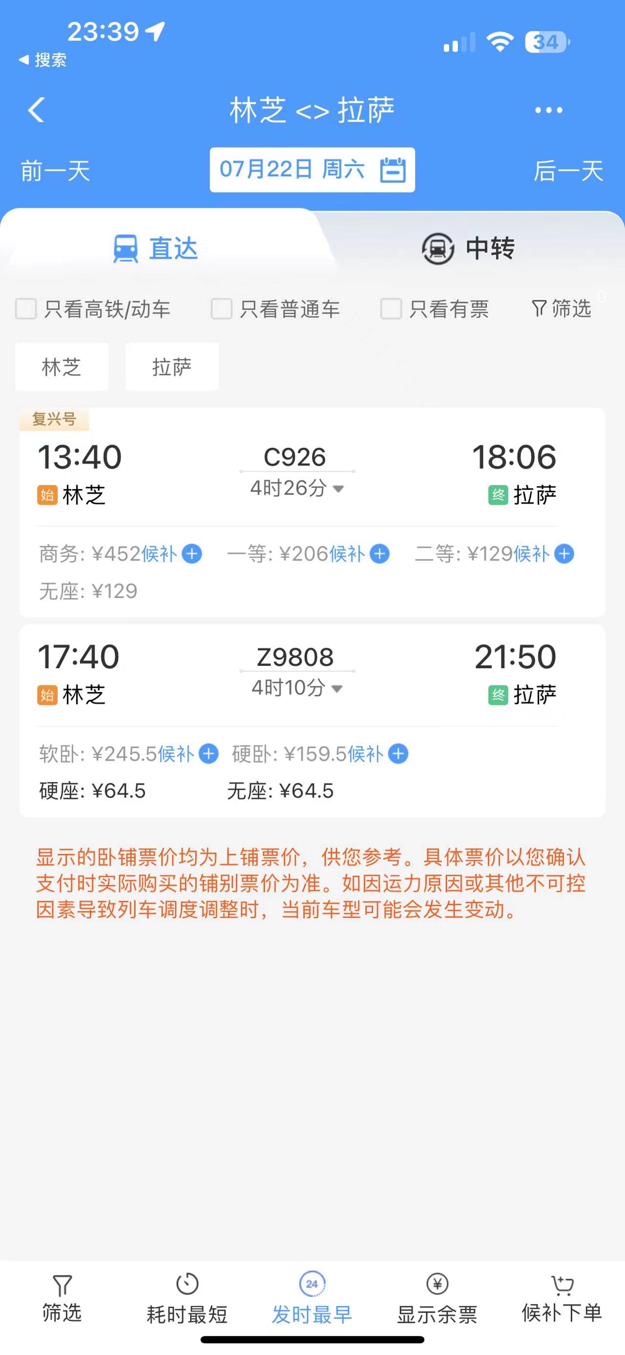 通過在鐵路售票APP上查詢發(fā)現(xiàn),從林芝開往拉薩的復(fù)興號城際列車的二等座票價(jià)為129元,直達(dá)特快列車硬座為64.5元?!跋啾容^原先180元的客運(yùn)汽車票價(jià),直達(dá)特快列車便宜了近乎三分之一?!辈芟壬锌卣f道。