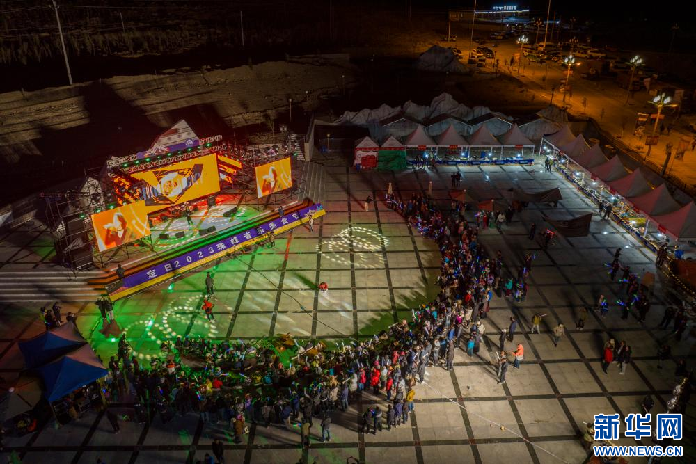 23日晚,觀眾們匯聚在珠峰小鎮(zhèn)廣場中央,在美妙的歌聲中品嘗各地美食,在鍋莊舞中感受當?shù)厝宋奶厣餐w驗這場聽覺、味覺、視覺兼具的巔峰之旅。