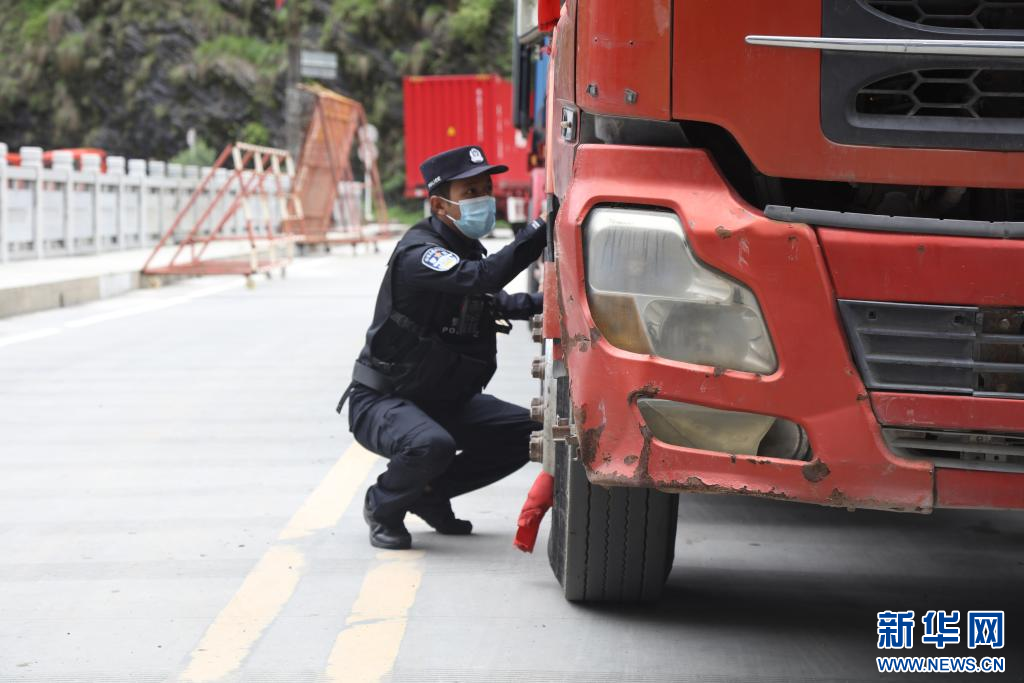 這是扎西頓珠正對入境貨車進(jìn)行車體檢查。(新華網(wǎng)發(fā) 鄒興國 攝)