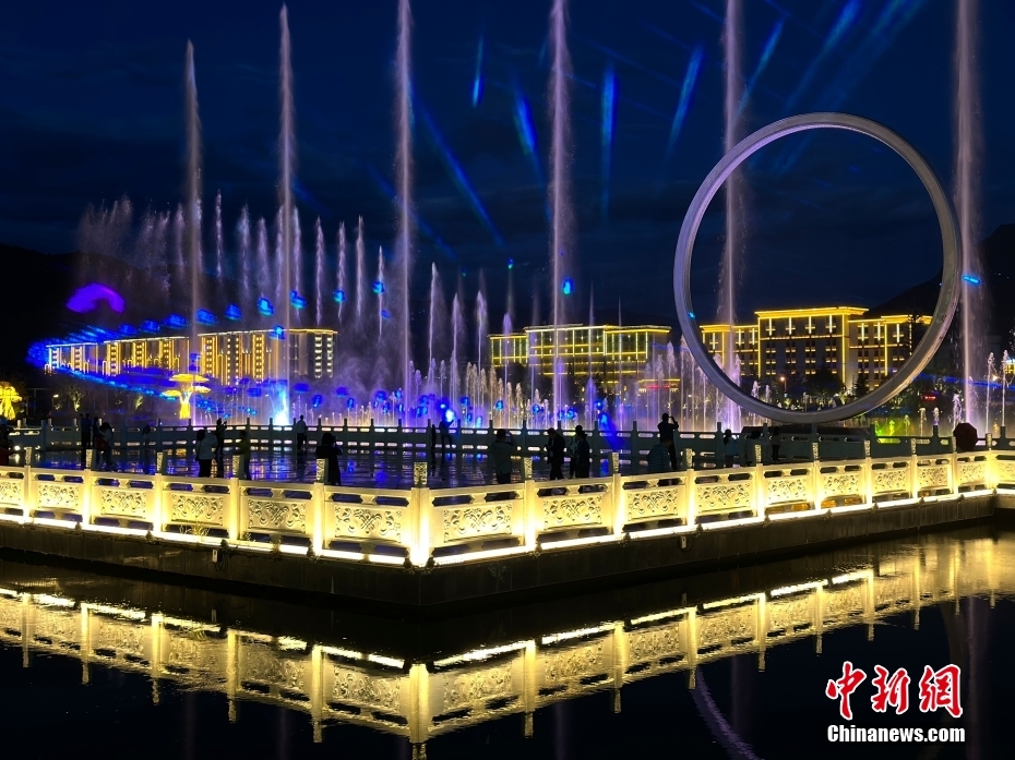 音樂水秀噴泉位于工布公園人工生態(tài)湖中。錢姣姣 攝