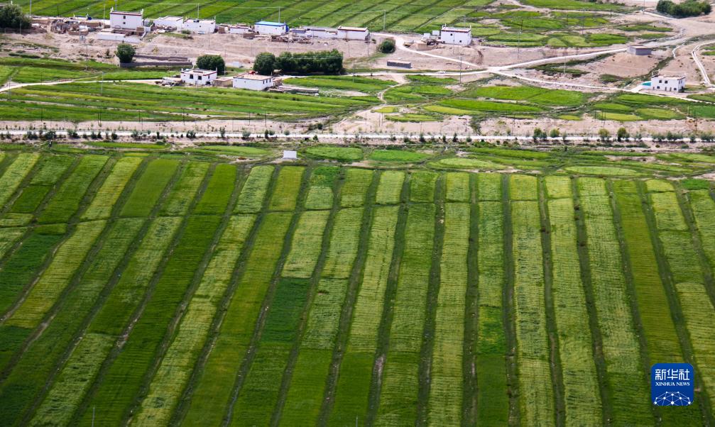被青稞田點綴的西藏普蘭縣村莊(8月12日攝)。新華社記者 曹檳 攝