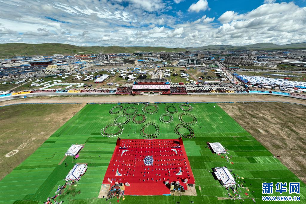 8月10日,演員在開幕式上表演舞蹈(無人機(jī)照片)。新華網(wǎng) 旦增努布 攝