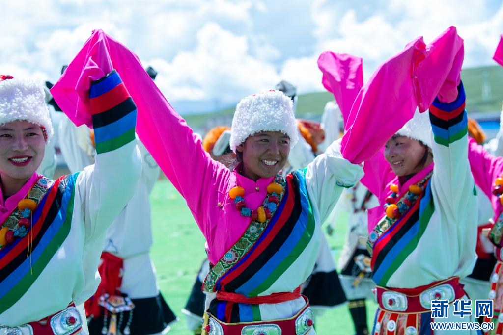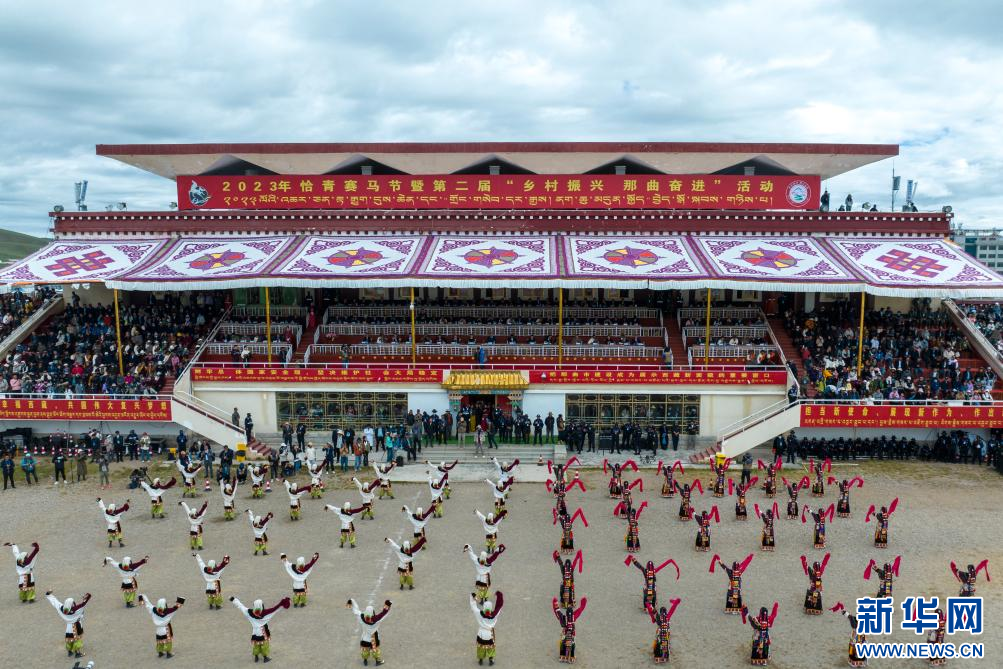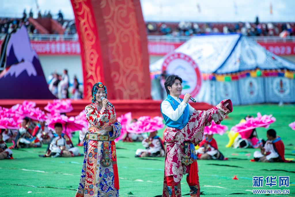 ??近日,2023年恰青賽馬節(jié)開幕式在西藏自治區(qū)那曲市格薩爾王賽馬場(chǎng)舉行,來自那曲市各縣(區(qū))的演員和歌手共同載歌載舞。