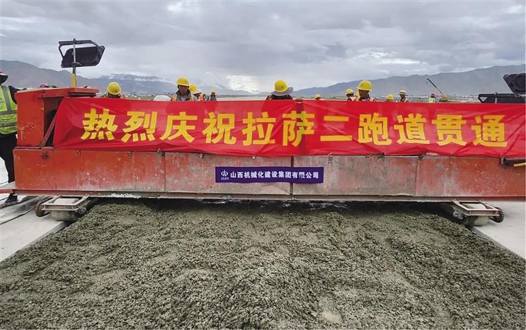 近日,隨著施工現(xiàn)場攤鋪機轟鳴聲的戛然而止,拉薩貢嘎機場新建第二跑道最后一倉混凝土完成澆筑,標志著拉薩貢嘎機場新建第二跑道順利完成全線貫通。