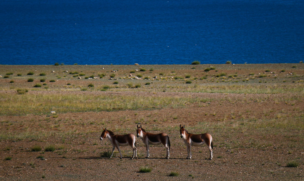 拉昂錯位于西藏阿里地區(qū)普蘭縣東北部的霍爾鄉(xiāng),湖面海拔4573米。拉昂錯與圣湖瑪旁雍錯相鄰,僅以一條公路相隔,遠(yuǎn)處岡底斯山脈的主峰岡仁波齊巍峨聳立。藏野驢是國家一級保護(hù)動物,青藏高原特有物種,近年來隨著西藏生態(tài)保護(hù)力度不斷增大,藏野驢數(shù)量由原來的5萬只左右增加至現(xiàn)在的約9萬只。