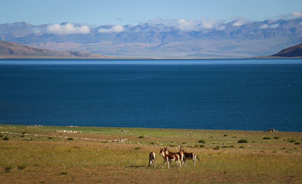 藏野驢在拉昂錯旁停留(8月13日攝)。新華社記者聶毅、曹檳攝影報(bào)道