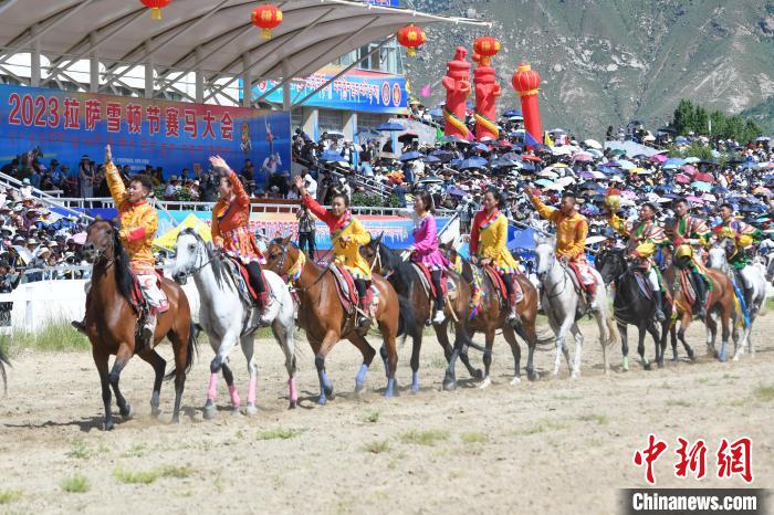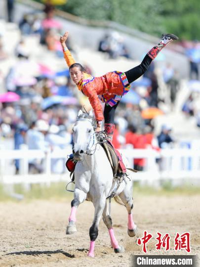 8月17日,西藏傳統(tǒng)體育項(xiàng)目——馬術(shù)表演亮相雪頓節(jié),在拉薩賽馬場(chǎng)開幕。民族傳統(tǒng)馬術(shù)表演內(nèi)容包括馬背上的舞蹈、馬上斬劈、馬上射箭、馬上敬酒、馬上拾哈達(dá)、多人多馬(疊羅漢)等10余個(gè)大項(xiàng)。當(dāng)天的活動(dòng),為民眾及游客帶來了一場(chǎng)視覺盛宴。