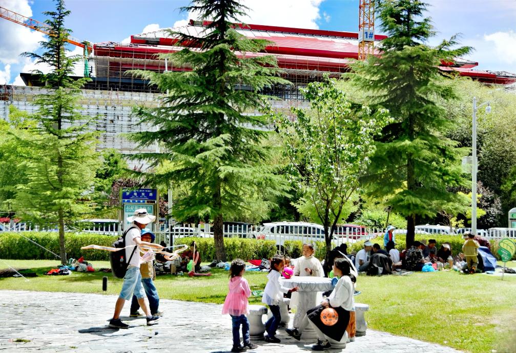 8月17日,拉薩雪頓節(jié)期間的羅布林卡,游客眾多。新華社記者 劉文博 攝