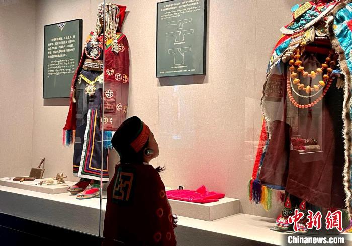 圖為穿著扎達(dá)傳統(tǒng)服飾的次仁央宗在參觀阿里博物館?!±妥楷? 攝