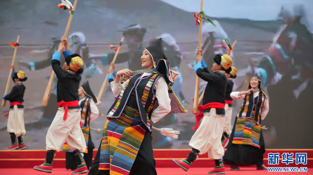 圖為隆子縣藝術(shù)團帶來的《扎西康桑舞蹈》(8月24日攝)。新華網(wǎng) 柑丹鴦琦 攝