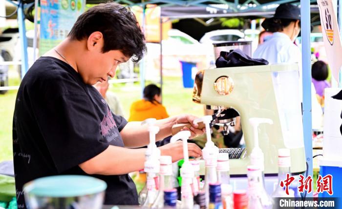 圖為咖啡走進鄉(xiāng)間,咖啡師調制咖啡。西藏他喜咨詢供圖