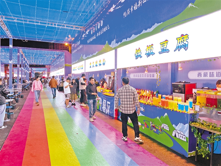 夜幕降臨,華燈初上,頓珠城·西藏味道美食街燈光璀璨,香飄四溢。開幕式現(xiàn)場,人頭攢動,嘉賓觀眾早早來到美食街,打開味蕾迎接這場盛會的到來。
