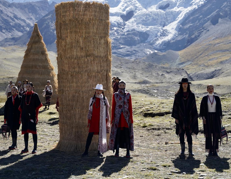 以雪域高原的藍(lán)天白云為幕,以廣袤無(wú)垠的高山草甸為毯,以金光燦燦的青稞裝飾為景……9月17日上午10時(shí)許, 來(lái)自上海金山的時(shí)裝品牌:沙涓“雪域·回響”喜馬拉雅大秀在西藏日喀則江孜縣乃欽康桑雪山下舉行,向現(xiàn)場(chǎng)觀(guān)眾呈現(xiàn)了一場(chǎng)西藏氆氌手工藝大秀,并通過(guò)視頻直播全球首發(fā),展現(xiàn)非遺復(fù)興。