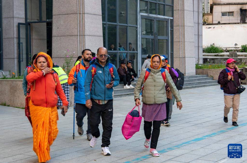 一隊(duì)外國(guó)游客通過(guò)吉隆口岸從我國(guó)出境到尼泊爾(9月11日攝)。新華社記者 姜帆 攝