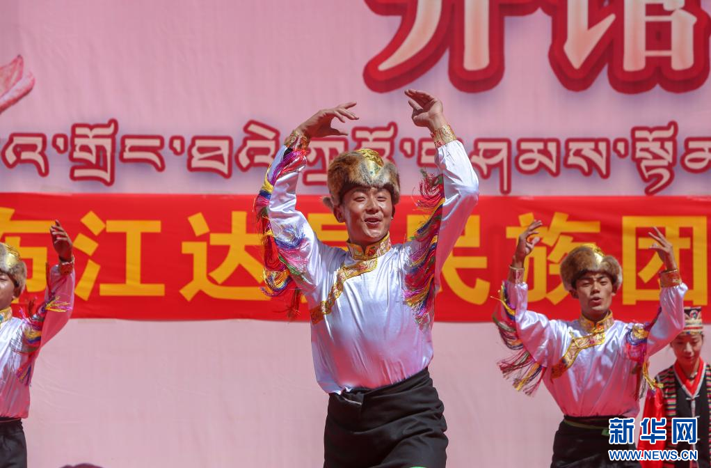 開館儀式上,演員正在表演具有當(dāng)?shù)靥厣拿褡逦璧?。?月27日攝)新華社記者 邵澤東 攝