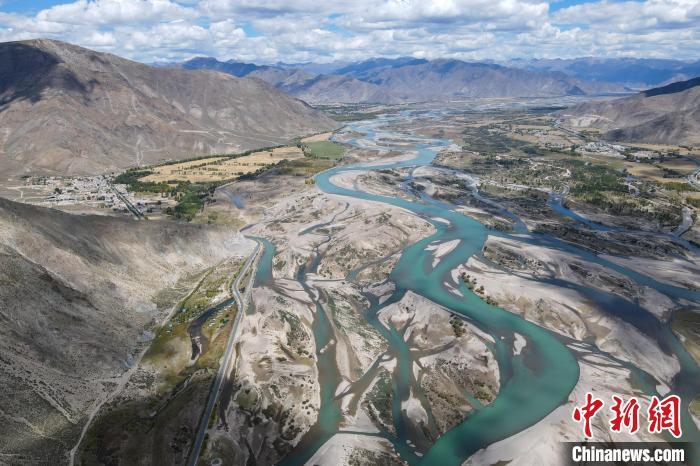 拉薩河藏語稱吉曲,意為“快樂河”“幸福河”,是世界上最高的河流之一。拉薩河沿途流經(jīng)墨竹工卡縣、達孜區(qū),隨后經(jīng)過拉薩市,在拉薩市曲水縣匯入雅魯藏布江,是雅魯藏布江的5大支流之一。9月29日,中新網(wǎng)記者使用無人機航拍拉薩河,高空視角下,拉薩河水系風光壯麗。