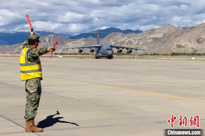 維和部隊官兵搭乘專機(jī)抵達(dá)拉薩貢嘎國際機(jī)場。張琦攝