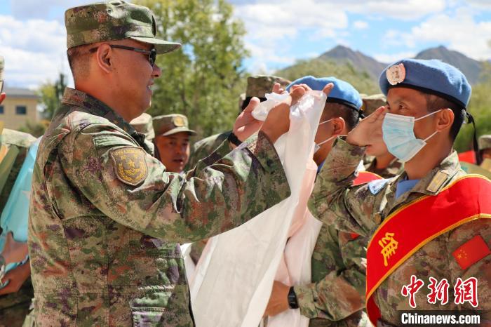 用哈達(dá)和鮮花迎接維和部隊官兵。彭毅攝