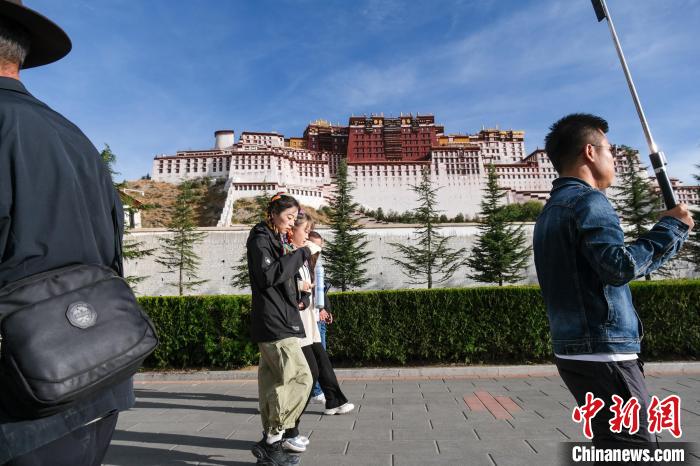 圖為9月30日上午,游客、市民途經(jīng)布達拉宮。江飛波 攝