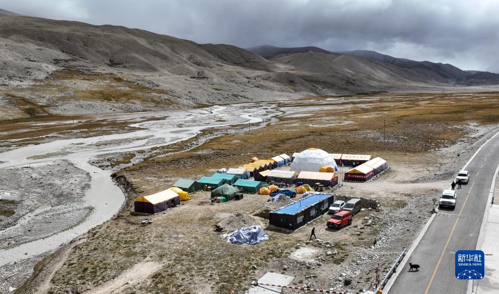 這是卓奧友峰登山大本營,科考隊員在這里開展部分急進高原人群健康研究(10月1日攝,無人機照片)。新華社記者 晉美多吉 攝