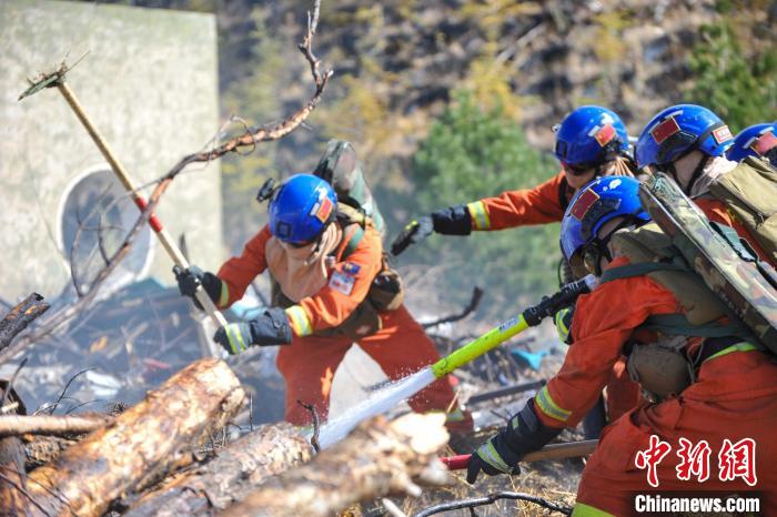 圖為防滅火實戰(zhàn)演練現(xiàn)場。拉薩市森林消防大隊 供圖