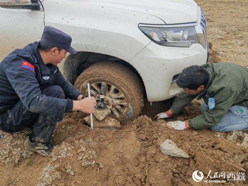 最后一次陷車是在晚上9點(diǎn)多,哪怕是夏季,這里氣溫也已降到零下十幾度。風(fēng)雪不斷襲來(lái),他們趴在地上甚至用手刨。時(shí)間一分一秒過(guò)去,大家都沒(méi)力氣說(shuō)話了。