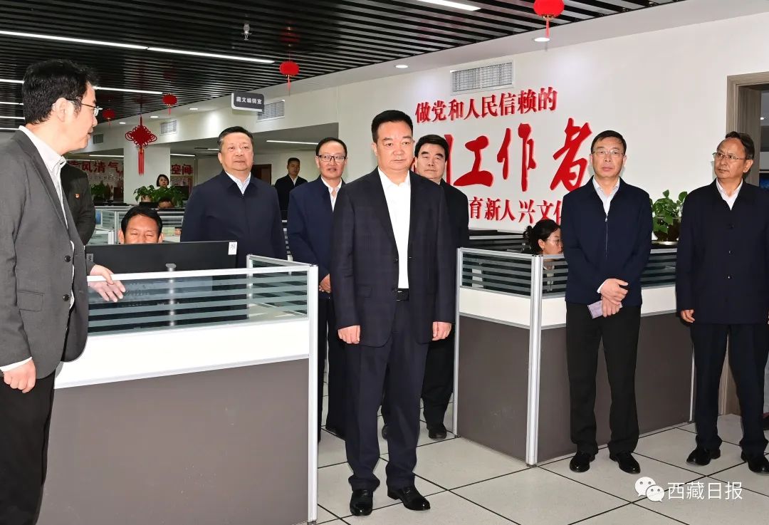 2023年9月25日,自治區(qū)黨委書記王君正來到西藏日報社、西藏廣播電視臺調研。這是王君正在西藏日報社詳細了解市場化運營、全媒體傳播體系建設、媒體深度融合發(fā)展等情況。記者 旦增西旦 攝