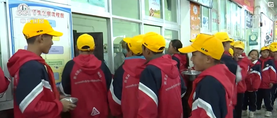 學(xué)校的學(xué)生絕大部分來(lái)自牧區(qū),寄宿制能夠保證更好的教學(xué)質(zhì)量,但并不強(qiáng)制。晚上下課后,離學(xué)校近的學(xué)生由家長(zhǎng)接走,格桑堅(jiān)才則和小伙伴去食堂吃晚飯。學(xué)校還配備生活老師,照顧學(xué)生的日常起居、提供日用品。這些費(fèi)用都由中國(guó)從1985年開始,對(duì)西藏自治區(qū)實(shí)施的教育“三包”政策負(fù)擔(dān)。包吃、包住、包學(xué)習(xí)費(fèi)用,學(xué)生家庭不用出一分錢。2023年這一政策的補(bǔ)助金額又再次提高,達(dá)到年生均4000—5000元。這所學(xué)校的升學(xué)率能達(dá)到100%。