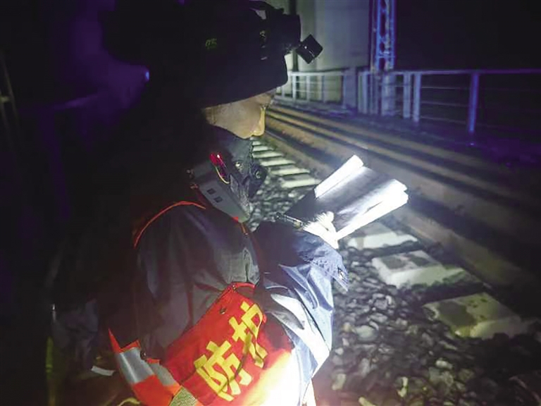 次日2時40分,經(jīng)過長達4個小時的鏖戰(zhàn),“天窗”作業(yè)結束,3名作業(yè)人員有序撤出防護柵欄。次仁央宗像往常一樣,將手電筒的亮度調到最大,一一檢查路肩等容易忽視的角落。確認沒有工具材料遺落,她才鎖好柵欄門,返回工區(qū)。