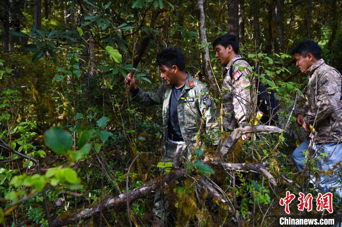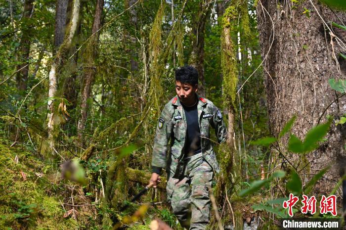 走進(jìn)原始森林,無(wú)路可言,他們用刀具清出一條通道來(lái)。地形復(fù)雜,灌木叢生,大家深一腳淺一腳前進(jìn),巡邏時(shí)還得注意蛇蟲(chóng)。上坡下坡間,索朗頓珠是速度最快的,外號(hào)“山羊”由此得來(lái)。