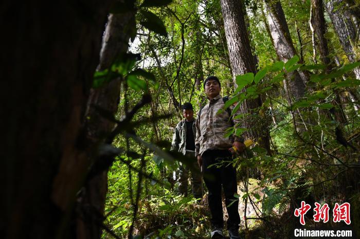 3名管護(hù)員到達(dá)格當(dāng)鄉(xiāng)最深處的一片原始森林。正值深秋,對(duì)于管護(hù)員們來(lái)說(shuō)是最好的季節(jié),雨季結(jié)束,蚊蟲(chóng)也少。他們僅帶了背包和道具,管護(hù)站副站長(zhǎng)索朗羅珠說(shuō):“今天不用過(guò)夜,帶的裝備很簡(jiǎn)單?!?/p>
