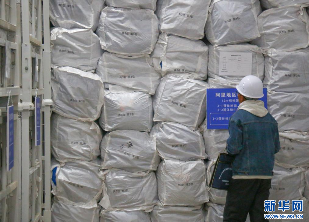 西藏阿里地區(qū)應(yīng)急救災(zāi)物資儲(chǔ)備庫一角。(11月5日攝)新華社記者 聶毅 攝