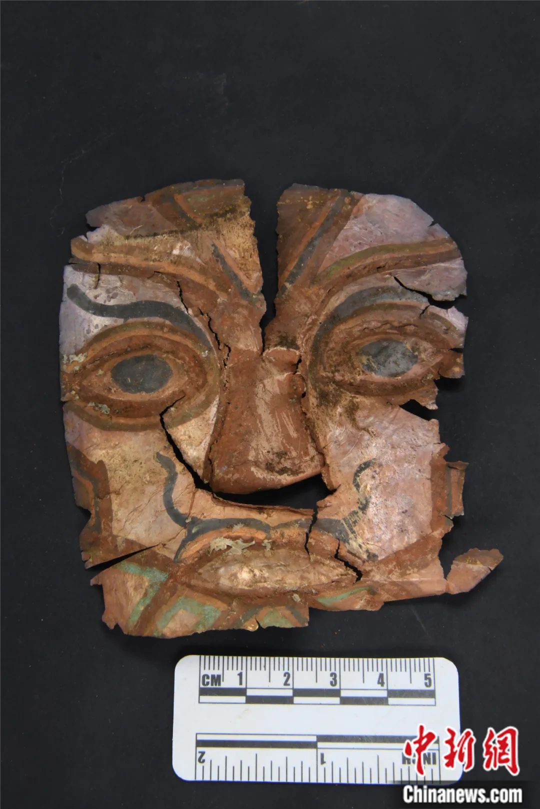 西藏札達(dá)桑達(dá)隆果墓地出土的銀質(zhì)鎏金面飾。國家文物局 供圖