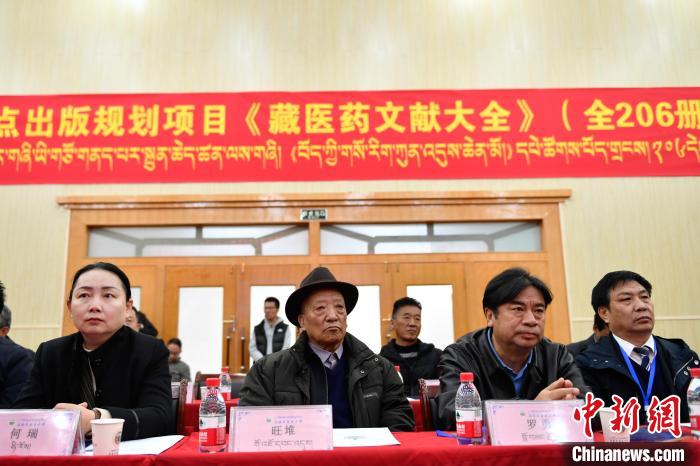 圖為 《藏醫(yī)藥文獻(xiàn)大全》首發(fā)暨贈(zèng)書(shū)儀式現(xiàn)場(chǎng)。貢嘎來(lái)松 攝