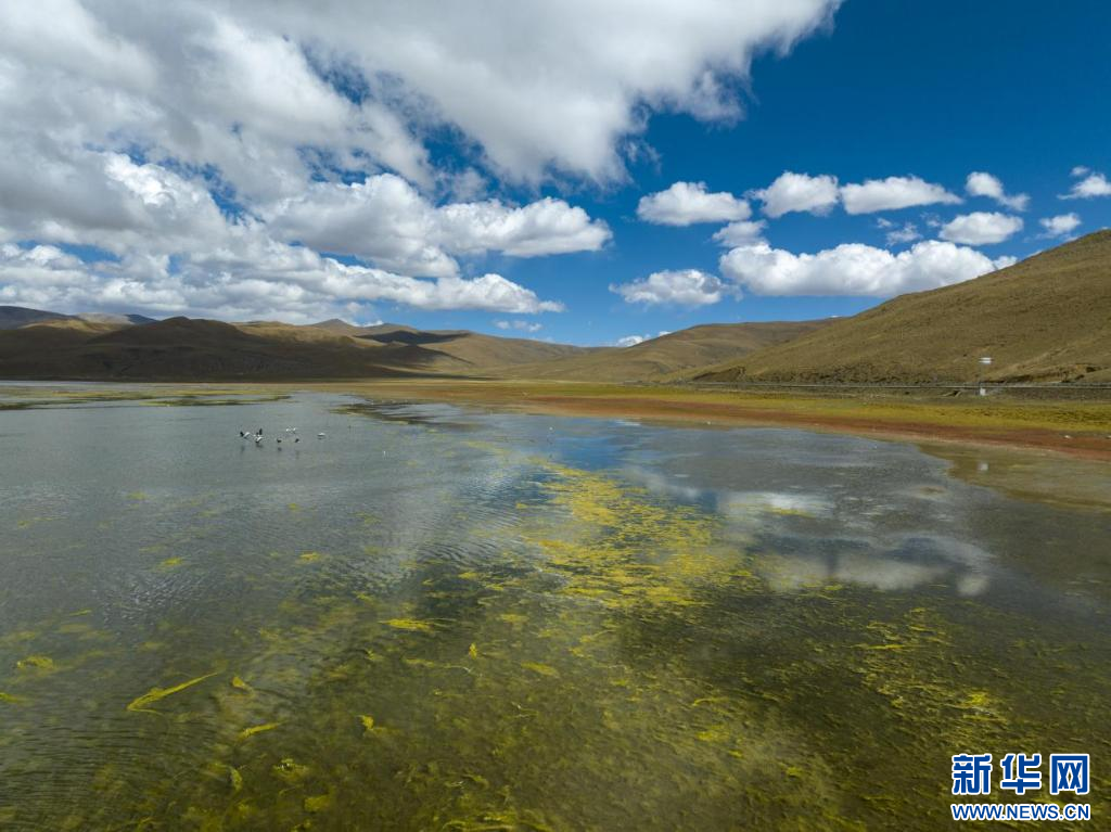 11月17日,在哲古湖拍攝的鳥群(無人機(jī)照片)。新華網(wǎng) 旦增努布 攝