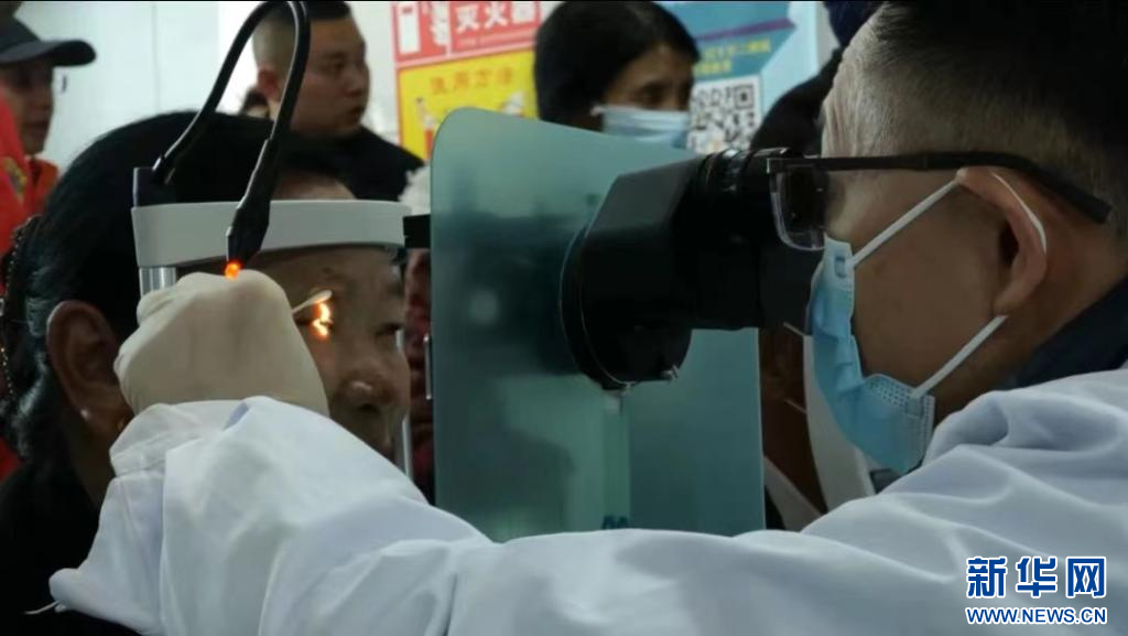 廣州市第一人民醫(yī)院與深圳獅子會眼科醫(yī)生為波密群眾進行白內障篩查(10月31日攝)。新華社發(fā)(王梓鳴 攝)