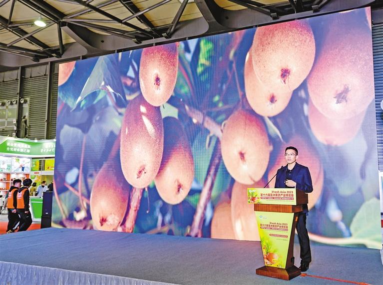 察隅獼猴桃獲得第十六屆iFresh亞洲果蔬產(chǎn)業(yè)博覽會“2023年度受市場歡迎的果品區(qū)域公用品牌”的榮譽。 圖片由本報記者 謝筱純 王珊 攝