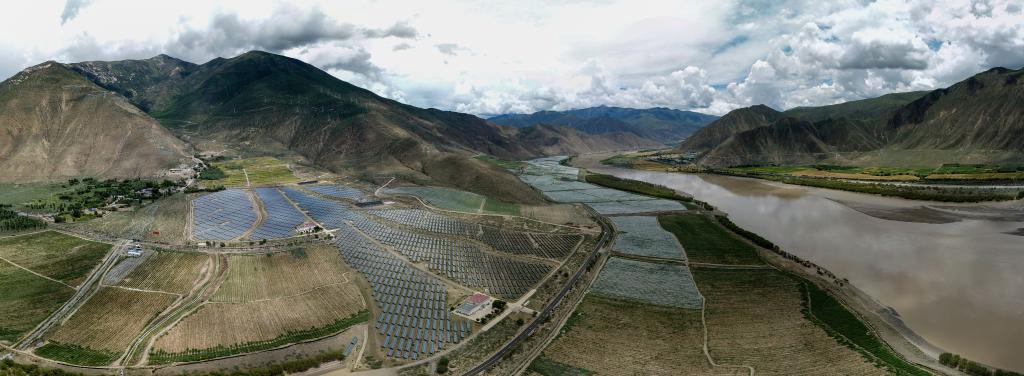 鳥瞰桑日縣高海拔葡萄種植基地(7月26日攝,無(wú)人機(jī)照片)。新華社記者 姜帆 攝