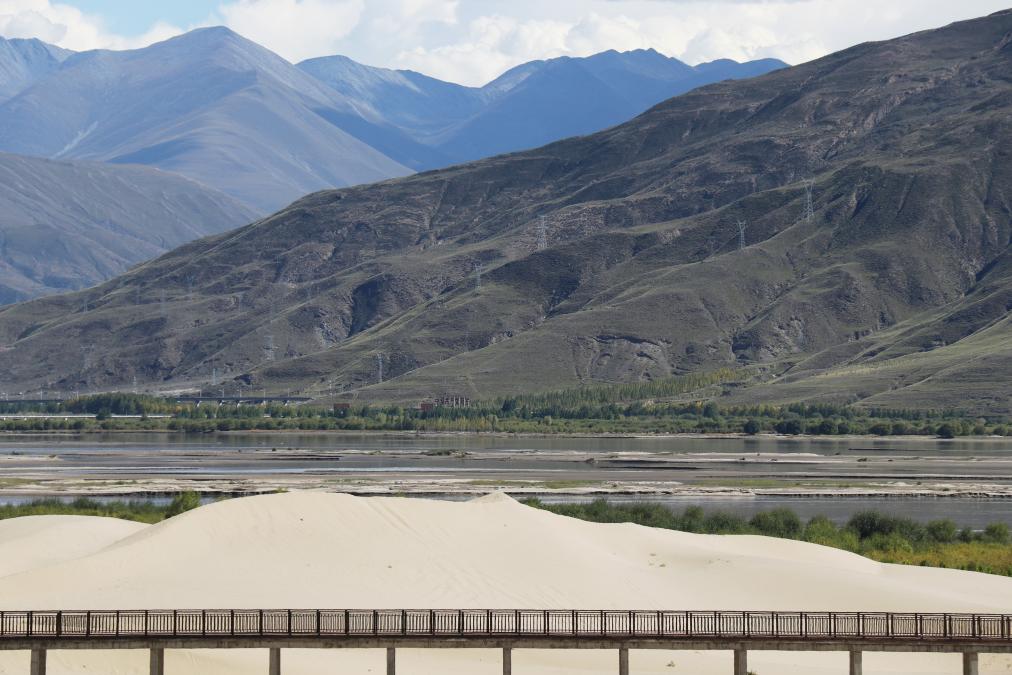 雅魯藏布江沖出中游的尼木峽谷后河道變寬、流速放緩,江水?dāng)y帶的泥沙在貢嘎、扎囊、桑日等縣沉積成沙洲。每到冬春枯水季節(jié)時(shí),寬闊的河床裸露出來(lái),揚(yáng)起的風(fēng)沙形成了一片片沙化地帶。