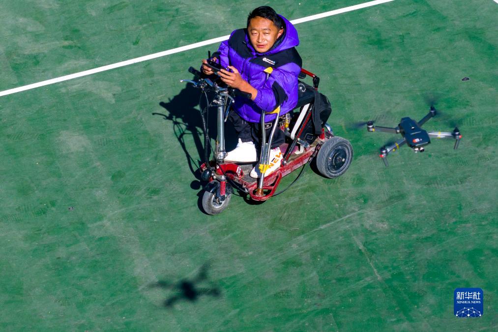 拉巴頓珠在練習(xí)操作無人機(jī)(無人機(jī)照片,12月2日攝)。新華社記者 姜帆 攝