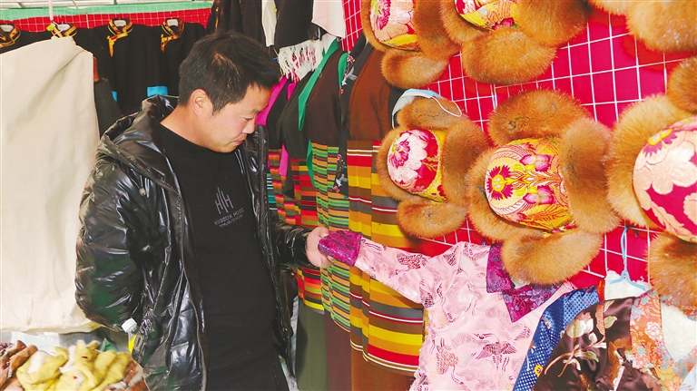 圖為顧客在為家人選購藏式服裝。