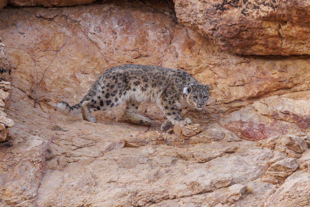 被放歸自然的雪豹。新華網(wǎng)發(fā)(長隆集團供圖)