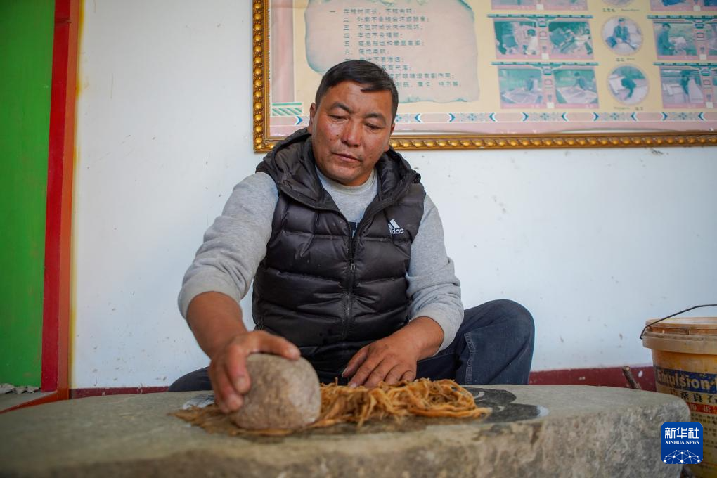 格桑旦增在檢查剛?cè)〕龅牟丶埖馁|(zhì)量(12月5日攝)。新華社記者 邵澤東 攝