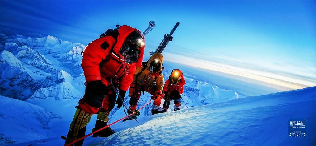 中國(guó)登山者在攀登珠峰(2020年5月19日攝)。新華社發(fā)(川藏高山向?qū)f(xié)作隊(duì)供圖)