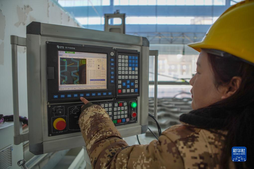 工人在3D打印建筑機(jī)器的操控臺(tái)上操作(12月12日攝)。新華社記者 邵澤東 攝