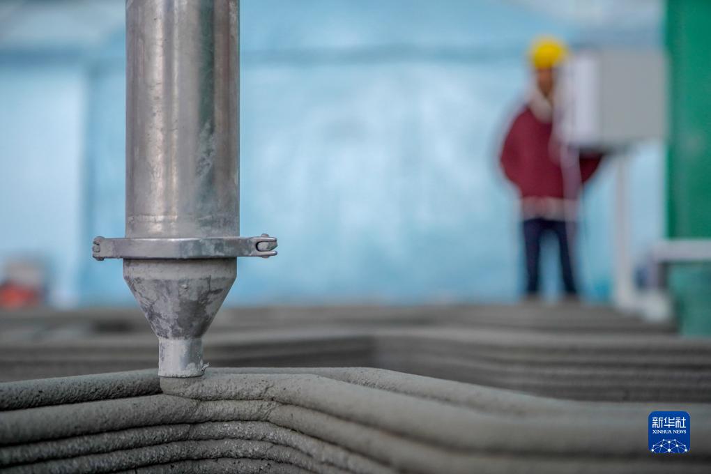 3D打印建筑機(jī)器在打印產(chǎn)品(12月12日攝)。新華社記者 邵澤東 攝