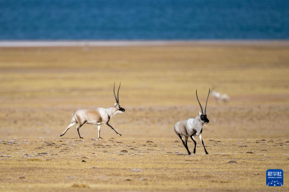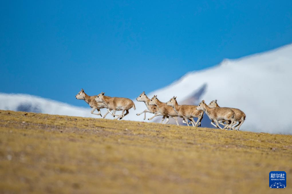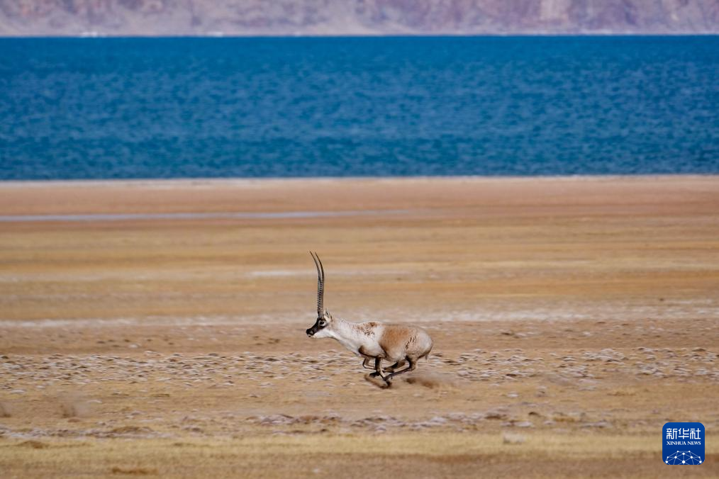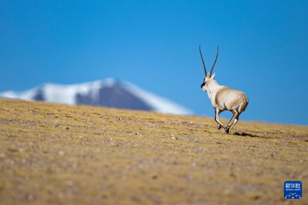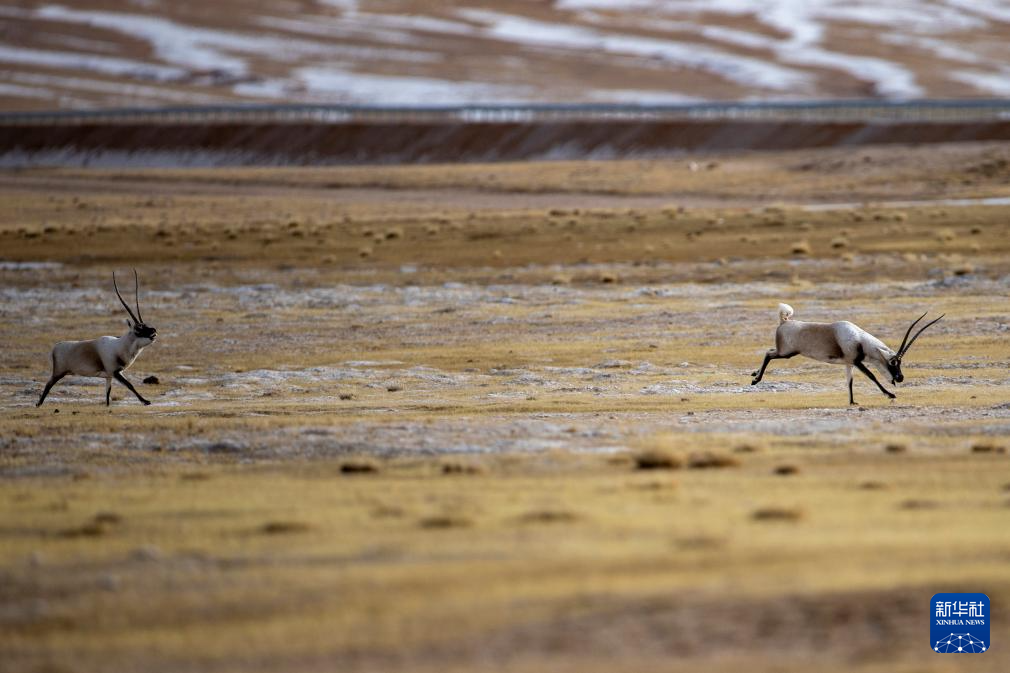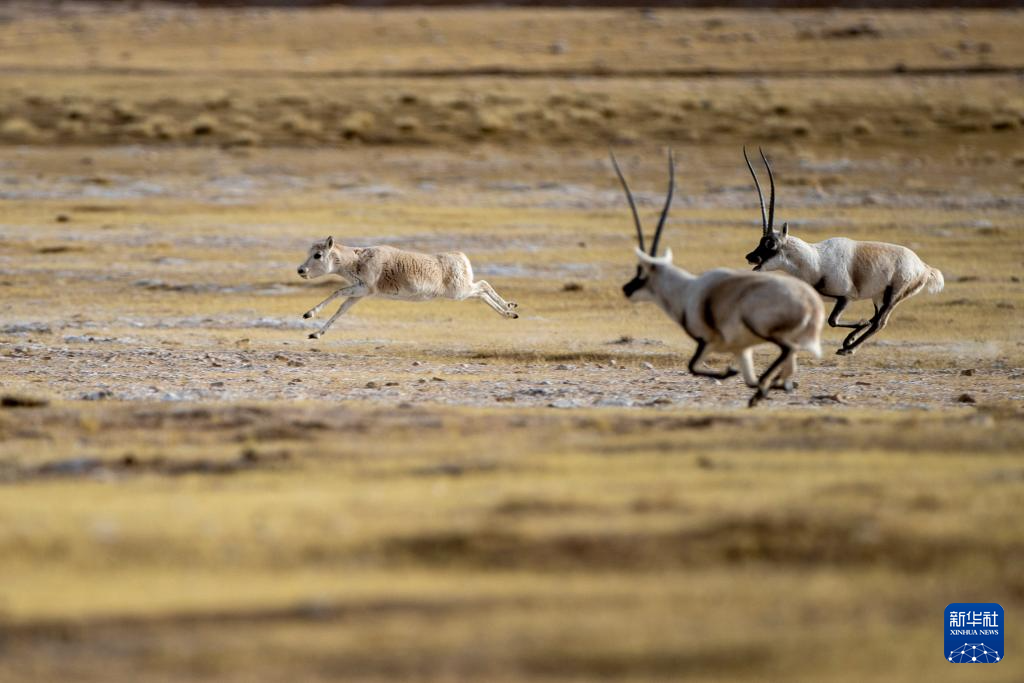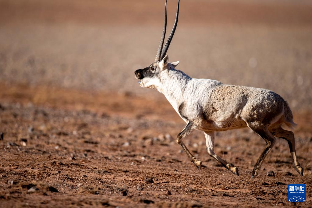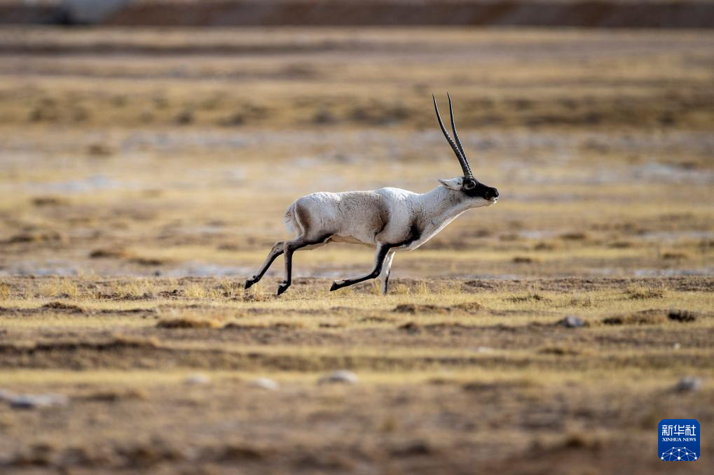 在羌塘國家級(jí)自然保護(hù)區(qū),一只雄性藏羚羊在奔向雌性(12月16日攝)。新華社記者 姜帆 攝