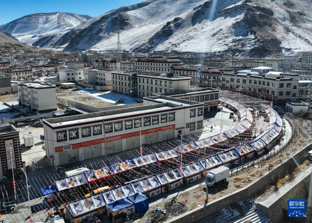 12月14日,西藏日喀則市康馬縣冬季物資文化交流會(huì)現(xiàn)場(chǎng)航拍(無(wú)人機(jī)照片)。新華社記者晉美多吉 攝