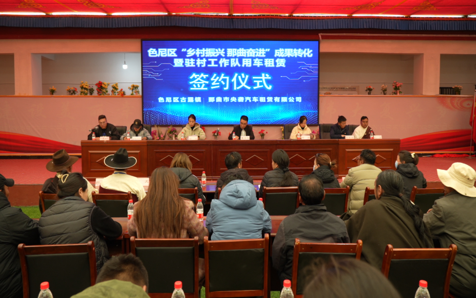 那曲市色尼區(qū)“鄉(xiāng)村振興 那曲奮進(jìn)”成果轉(zhuǎn)化暨駐村工作隊(duì)用車租賃簽約儀式。